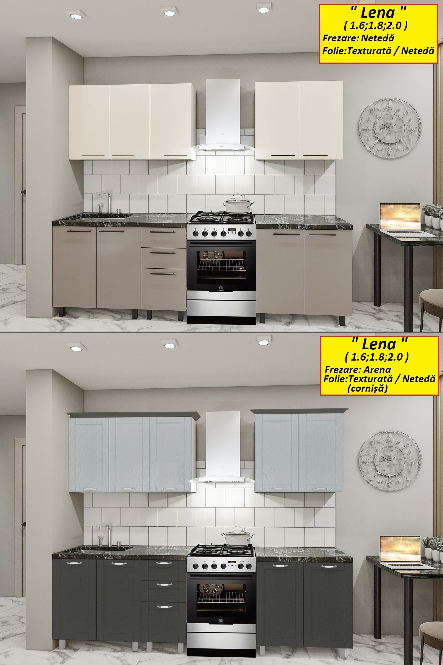 E posibilă compunerea bucatariei proprii din module și secții de bucătărie din diferite module și fasade(pentru detalii contactaține)