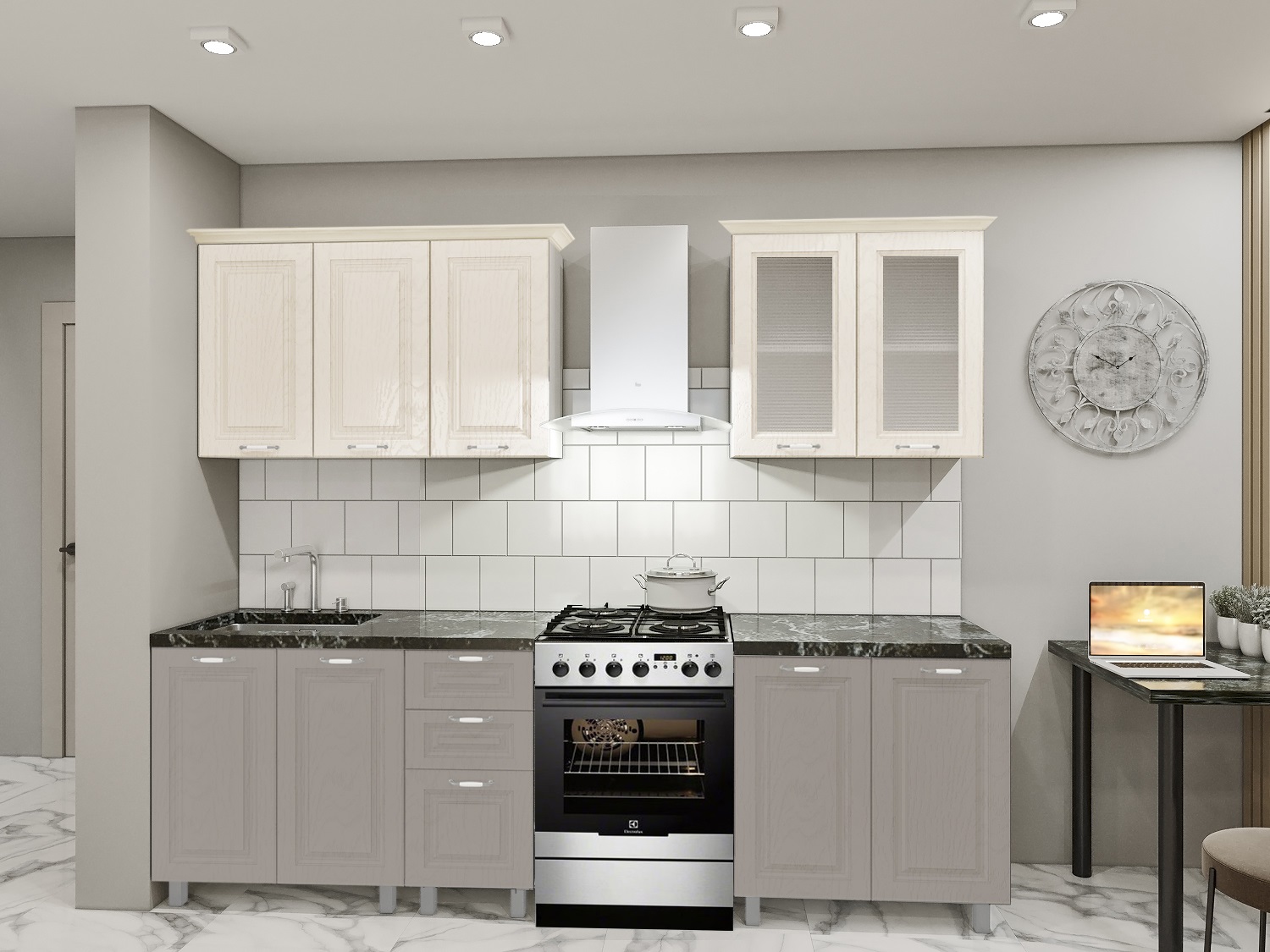 Tabliera, cornişă și tehnica de uz casnic nu este inclusa in set!