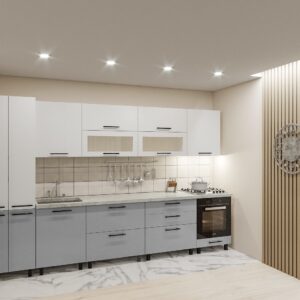 Bucătărie modulară de colț 3.4×1.7m cu fatade PAL. Seria „Y”.