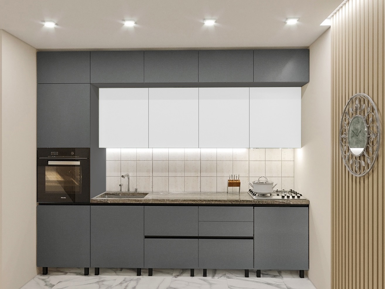 Bucătărie „Yarus” (MDF-mat,mânere-GOLA,dulap de bucătărie).
