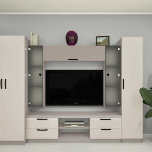 Living Alina – Т  (BТ) este o combinație ideală de culori moderne din PAL în caroserie și fațade, elemente impecabil practice și funcționale. Liniile drepte și mobilierul laconic, cu accent pe culorile îndrăznețe ale PAL laminat, nu vor supraîncărca interiorul, dar vor ajuta la sublinierea delicată a stilului camerei.