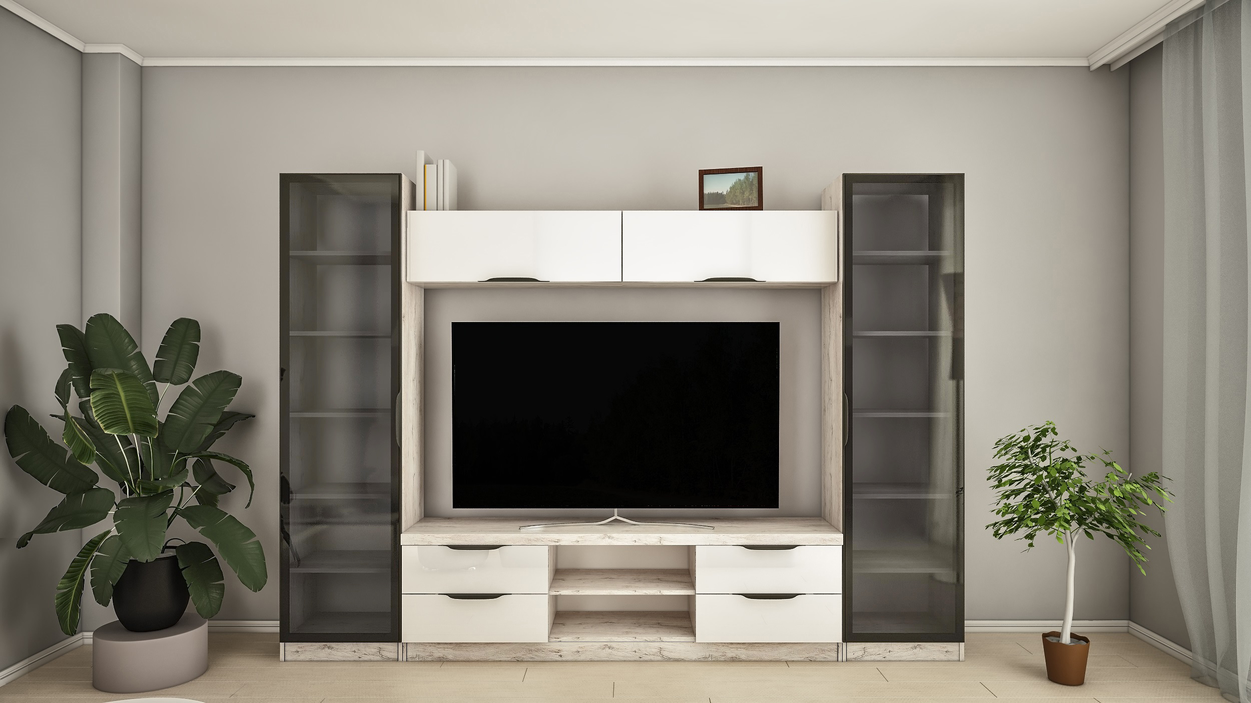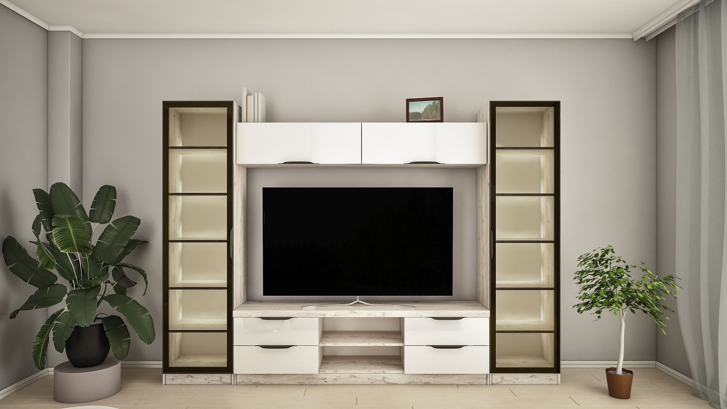 Livingul Lime + (L-50) (TV-1,8) 2,8 m reprezintă combinația ideală între PAL texturat și fronturi MDF lucioase, îmbinând perfect elemente practice și funcționale.