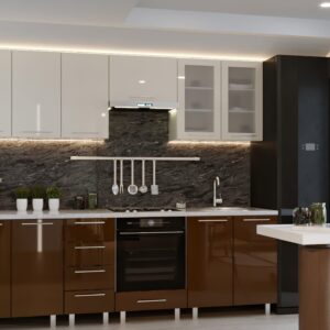Кухни «Макси» (1.8-2.8 м) с фасадами из глянцевых панелей.