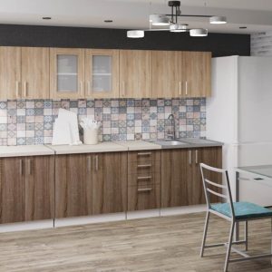 Состав комплекта (ШxГxВ): 200х47(глубина со столешницей 60 см) Верхний шкаф ВШ-80(стекло)........................................80х29х60 см Верхний шкаф ВШ-40........................................................40х29х60 см Верхний шкаф ВШ-80.........................................................80х29х6 см Нижний шкаф НШ-80(мойка).......................................80х45х72 см Нижний шкаф НШ-80.....................................................80х45х72 см Нижний шкаф НШ-40(4 ящ.).........................................40х45х72 см