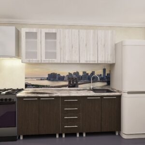 Состав комплекта (ШxГxВ): 200х47 (глубина со столешницей 60 см) Шкаф верхний ВШВ-80(2)б (1шт.): 80х30.5х72 см Шкаф верхний ВШВ(с)-80(2)б (1шт.): 80х30.5х72 см Шкаф верхний ВШ-40 (1шт.): 40х30.5х72 см Шкаф нижний НШ-80 (1шт.): 80х46.5х72 см Шкаф нижний НШ(м)-80(под мойку) (1шт.): 80х46.5х72 см Шкаф нижний НШ(я)-40 (1шт.): 40х46.5х72 см