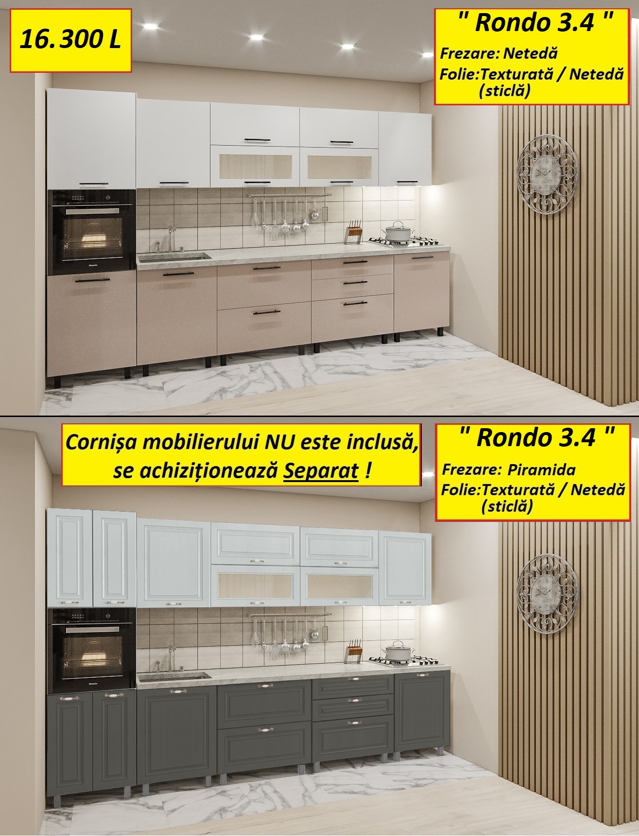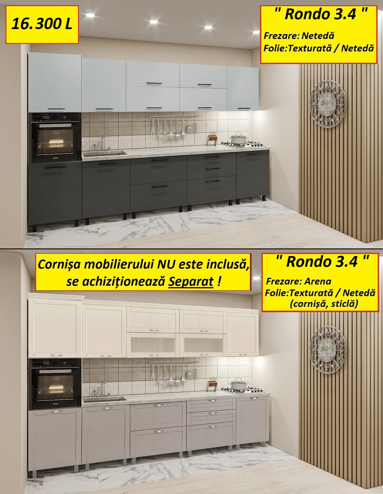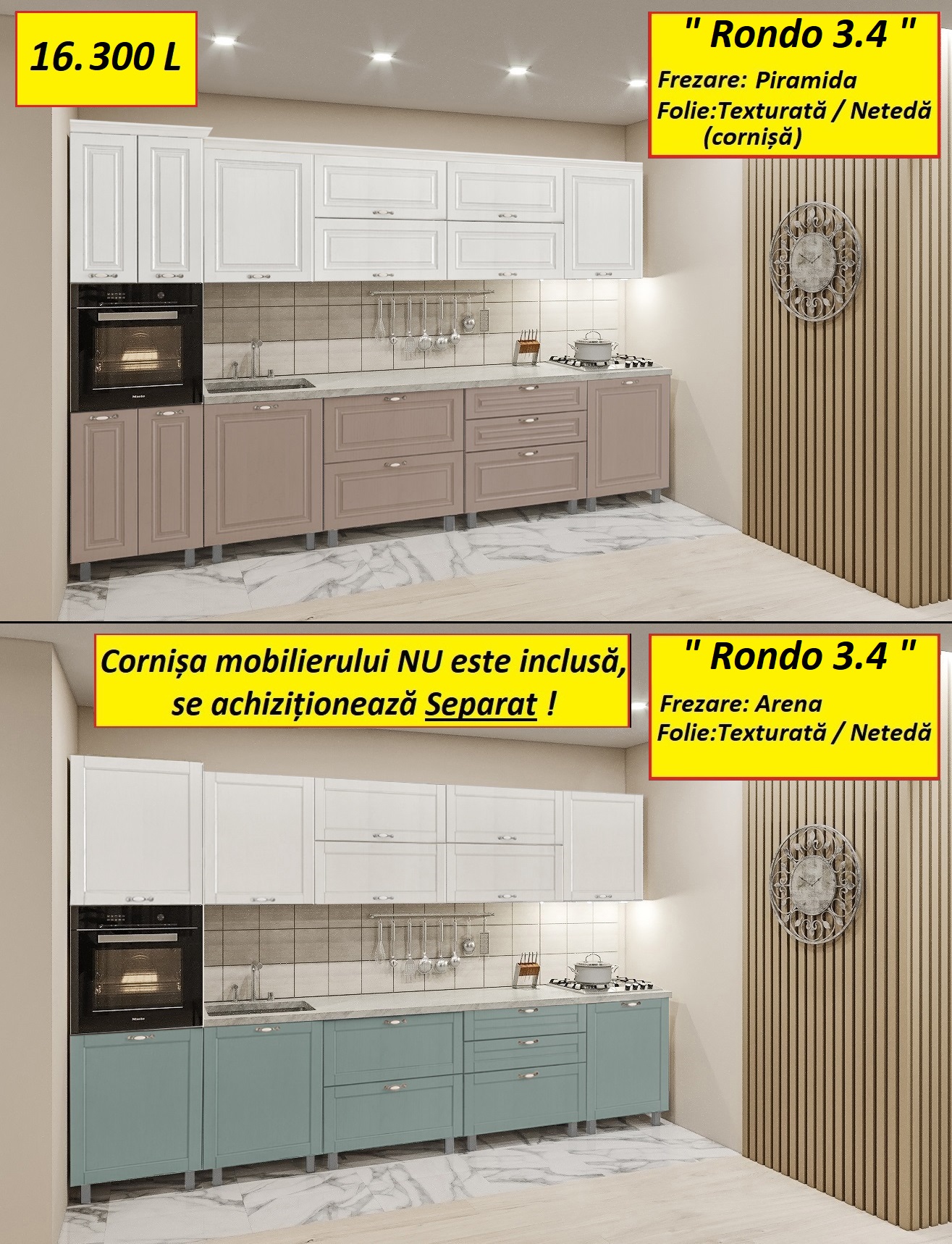 Кухня «Рондо» 3.4 м с фасадами из МДФ- 2 (пленка) — это отличный вариант для стильного образа кухни, придающий аккуратность и практичность интерьеру. Красивая кухня, которая способна подарить особую атмосферу тепла и уюта.