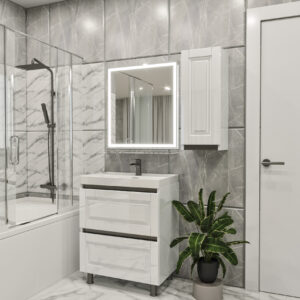 Состав комплекта (ШxГxВ): 90 х 46 х 193 (глубина раковины 46 см) Шкаф навесной ВНКД-75/30 (1шт.): 30 х 27 х 75 см - 1100 л. (Петли с доводчиками) Тумба напольная ВКД-60(2) (1шт.): 60 х 46 х 88 см - 3500 л. (Направляющие с доводчиками) Зеркало LED * (1шт.): 60 х 70 см - 1600 л. (* - с функцией подогрева ) Комплектуется керамическим умывальником Luxury-60 от Sanovit Раковина с переливным отверстием, и с отверстием для установки смесителя ** - Смеситель и стеклянная полка приобретается ОТДЕЛЬНО !