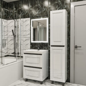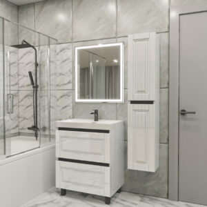 Состав комплекта (ШxГxВ): 80 х 46 х 193 (глубина раковины 46 см) Шкаф навесной ВНКК-75/20 (1шт.): 20 х 27 х 75 см - 1550 л. (Петли с доводчиками) Тумба напольная ВКК-60 (1шт.): 60 х 46 х 85 см - 4100 л. (Петли с доводчиками) Зеркало LED * (1шт.): 72 х 60 см - 1250 л. (* - с функцией подогрева, часами ) Комплектуется керамическим умывальником Luxury-60 от Sanovit Раковина с переливным отверстием, и с отверстием для установки смесителя ** - Смеситель и стеклянная полка приобретается ОТДЕЛЬНО !