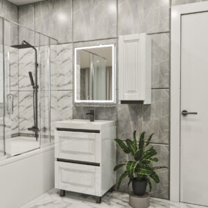 Состав комплекта (ШxГxВ): 90 х 46 х 193 (глубина раковины 46 см) Шкаф навесной ВНКК-75/30 (1шт.): 30 х 27 х 75 см - 1750 л. (Петли с доводчиками) Тумба напольная ВКК-60(2) (1шт.): 60 х 46 х 88 см - 4650 л. (Направляющие с доводчиками) Зеркало LED * (1шт.): 60 х 70 см - 1600 л. (* - с функцией подогрева ) Комплектуется керамическим умывальником Luxury-60 от Sanovit Раковина с переливным отверстием, и с отверстием для установки смесителя ** - Смеситель и стеклянная полка приобретается ОТДЕЛЬНО !