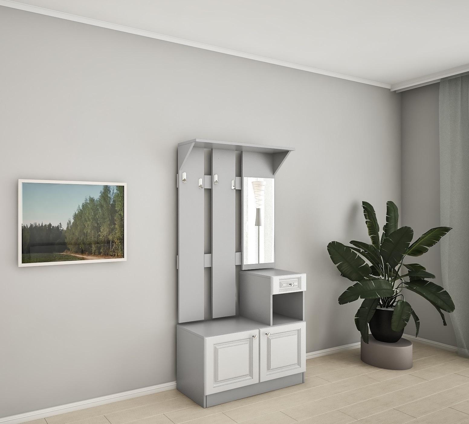 - Прихожая «AФY-94 «- стильная и компактная прихожая для вашего интерьера. Это идеальное сочетание Текстурного ДСП и МДФ фасадов c фрезеровкой.Создана не занимать много места. Это отличный вариант для небольших помещений, чтобы добавить стиля и уюта при входе в ваш дом.