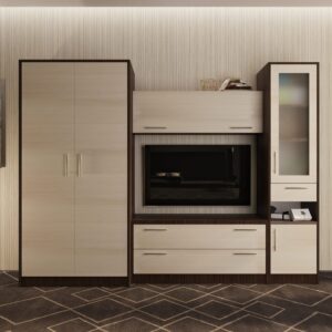 - Гостиная Анна выполнена в классическом стиле. В большой шкаф можно повесить одежду на вешалках, на полках положить книги или предметы интерьера. В центре расположена тумба для телевизора, с двумя вместительными ящиками. Красивая модель, которая создаст современную и комфортабельную обстановку в интерьере.
