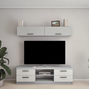 - Цвет ............ (Каркас) Cерый. (Фасад ) Cерый. Cветло серый. Фасад ................................................................ ЛДСП 18мм Каркас .............................................................. ЛДСП 18мм В стенку входят: 1)Полка МY-90(верхнее открывание)…………90х32х30 см (2 шт) 2)Тумба ТВY-180………………………………..............180х40х52 см