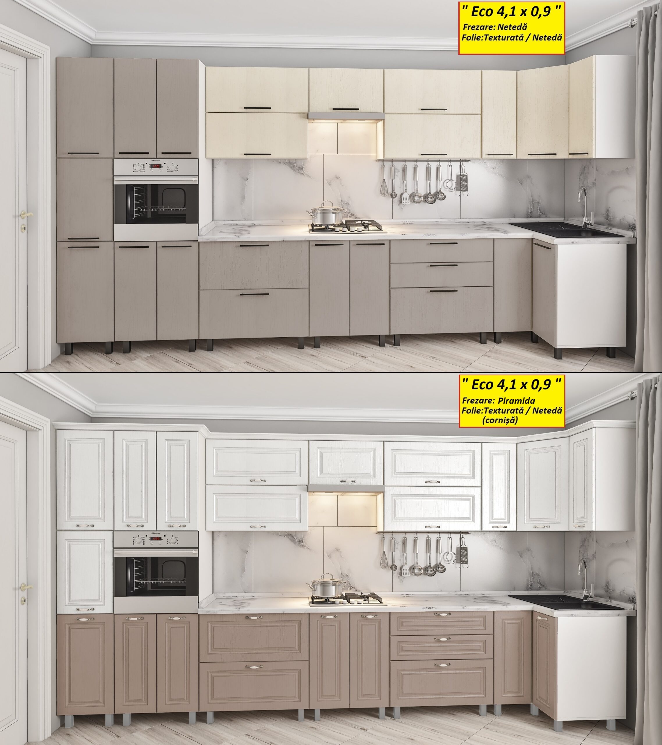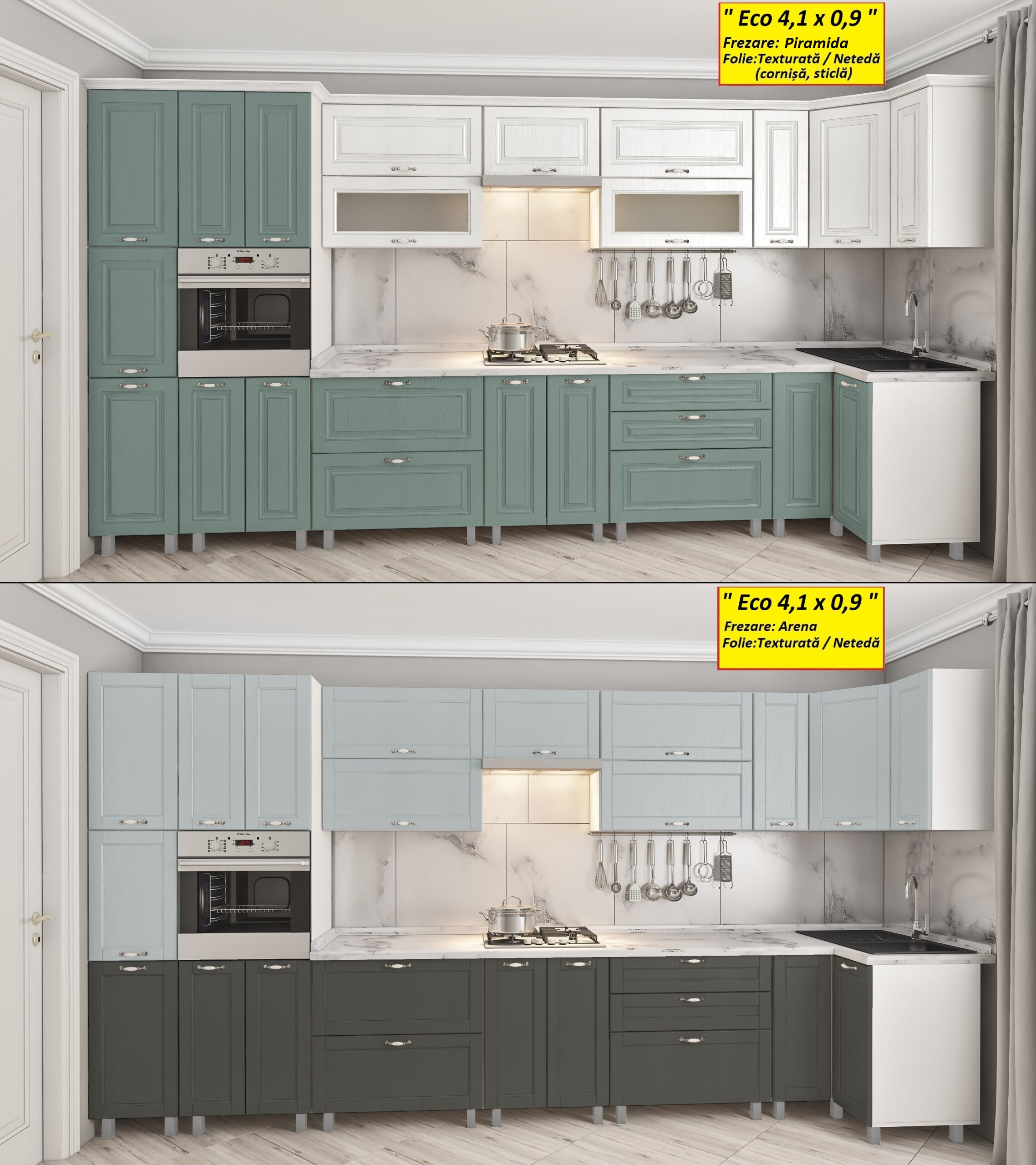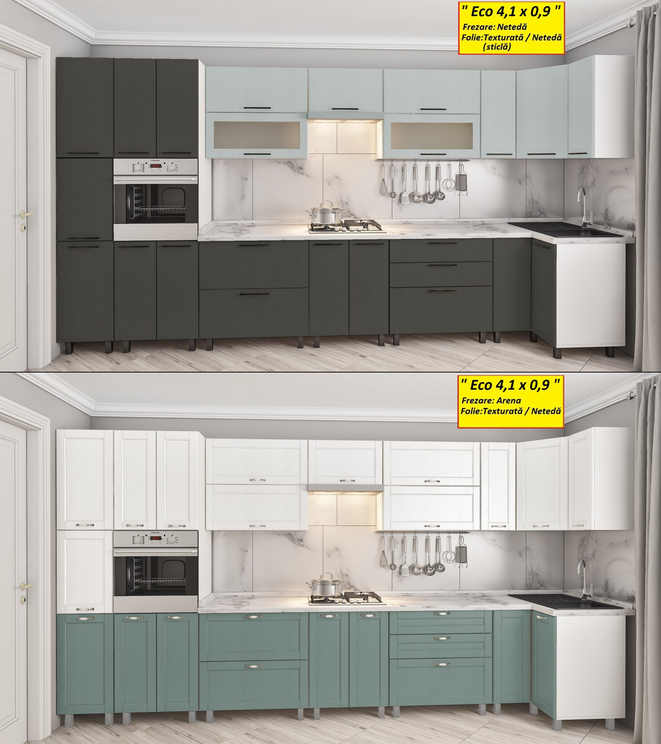 Угловая кухня ЭКО 4,1х 0,9 м(стекло) с фасадами из панелей МДФ-2 (плёнка)